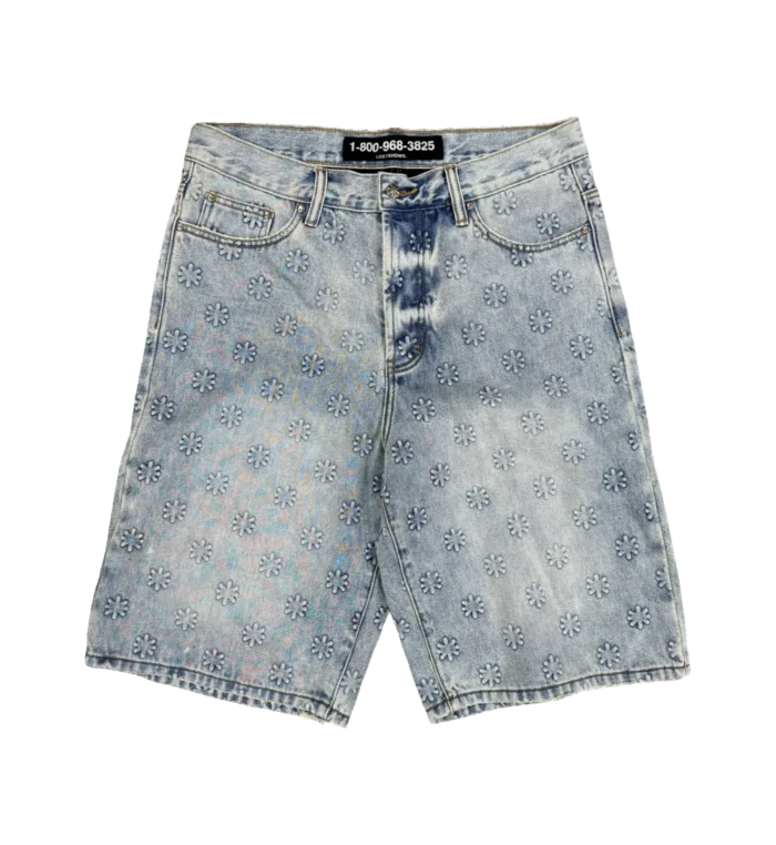 LOSTSHDWS EMBOSSED DENIM SHORT (BLUE)